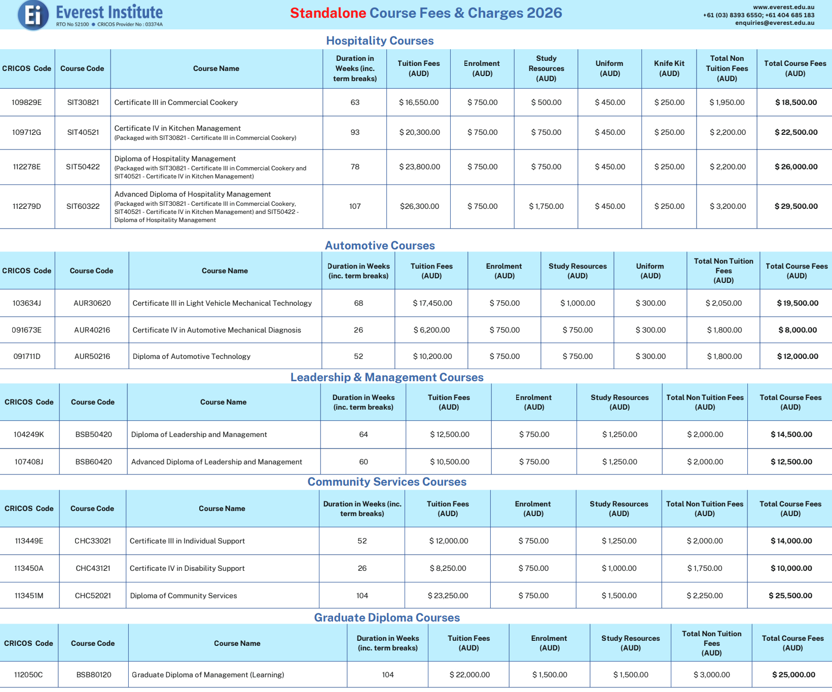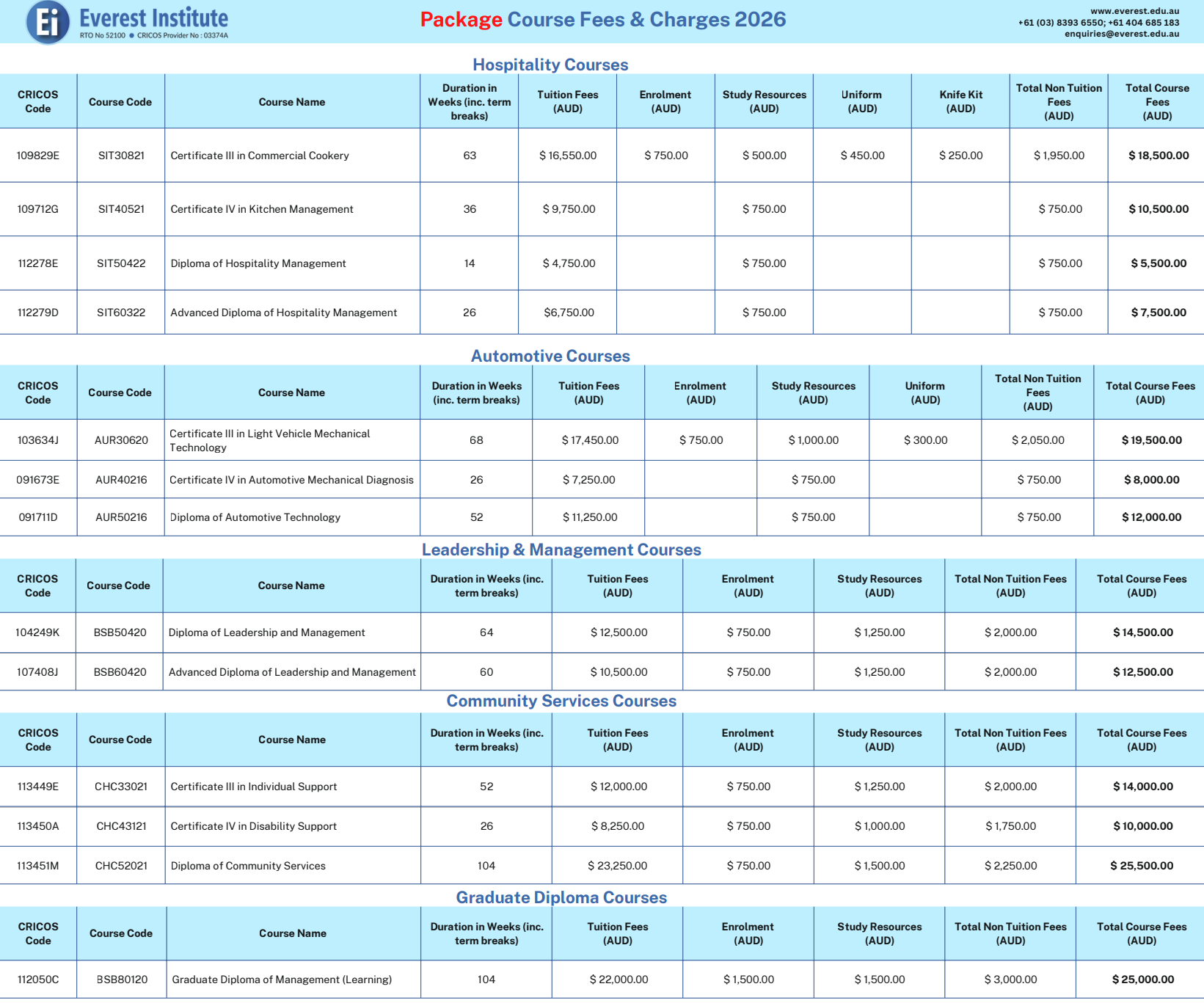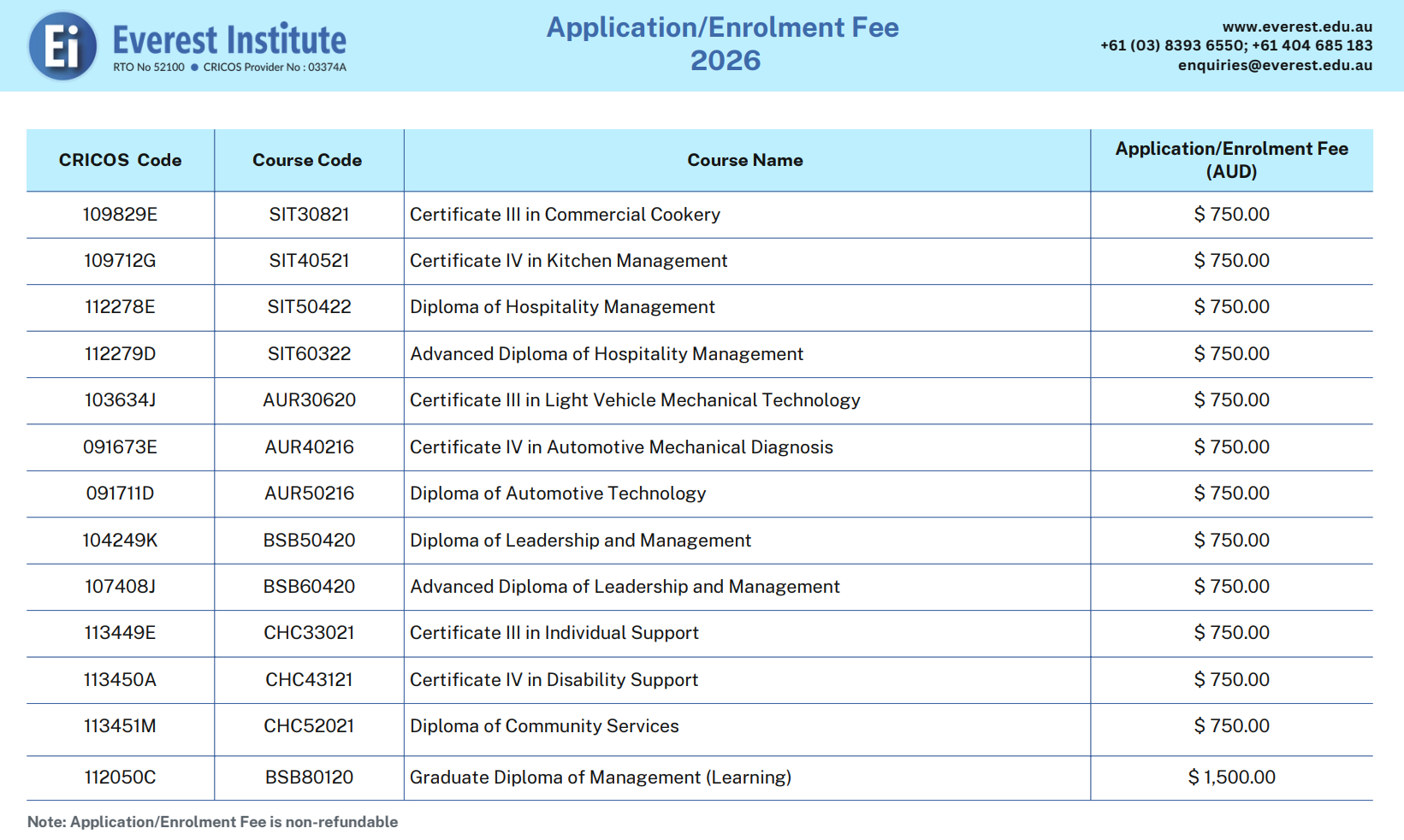 COURSE FEES - INTERNATIONAL